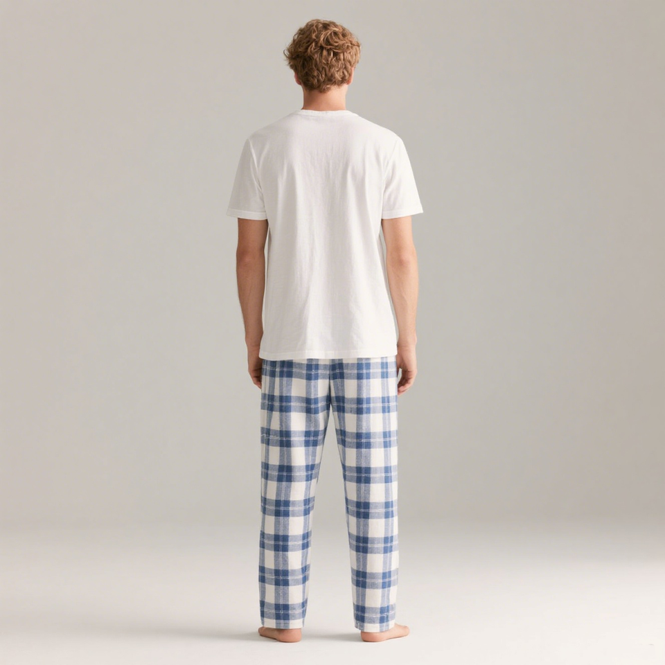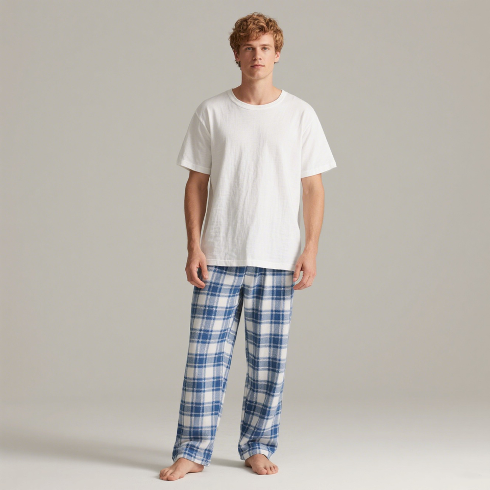 Pantaloni Pigiama Personalizzati a Gamba Larga in Flanella di Cotone a Quadri con Coulisse Comodi Pantaloni da Casa per Uomo
