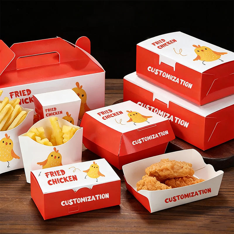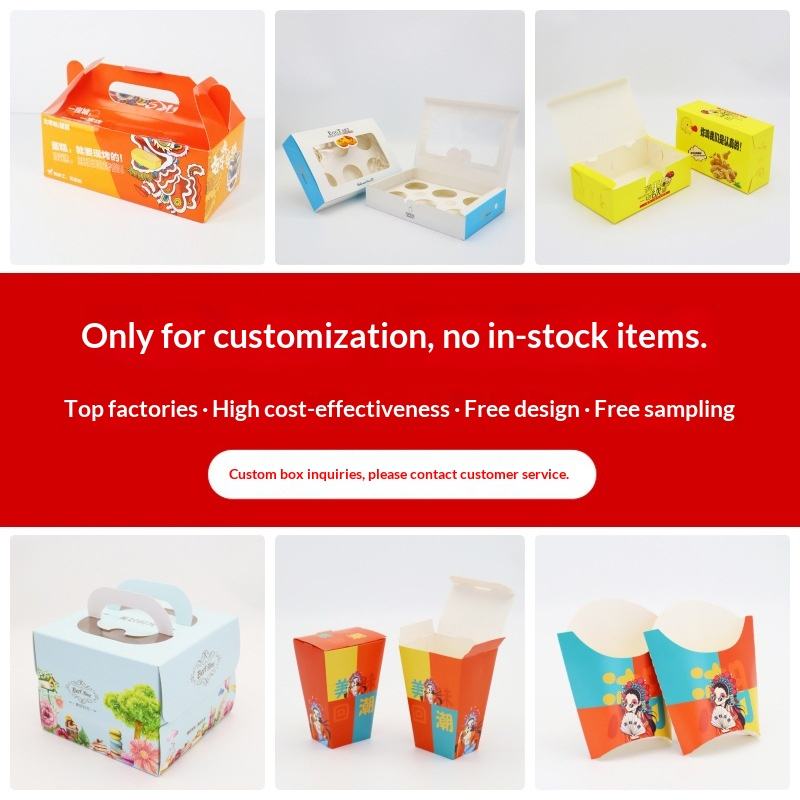 Scatola di Carta Personalizzata per Alimenti, Confezione Pieghevole in Cartone per Patatine Fritte, Pollo, Hamburger da Asporto con Logo Stampato