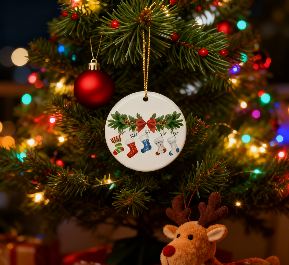 Decorazioni Natalizie in Ceramica con Motivi Personalizzati, Ornamenti a Forma di Mucca Highland, Regali per Mamma, Papà e Famiglia