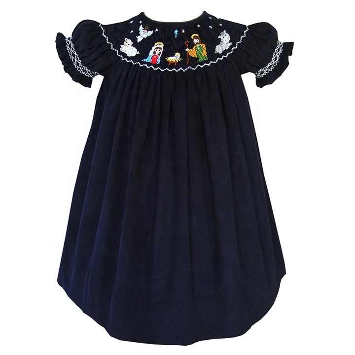 Product name:Holiday black hand smocking dress baby girl's Smocked Bishop Dress
