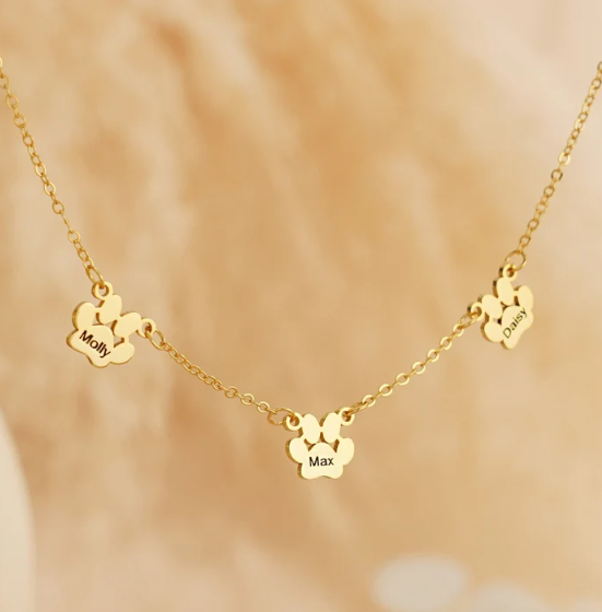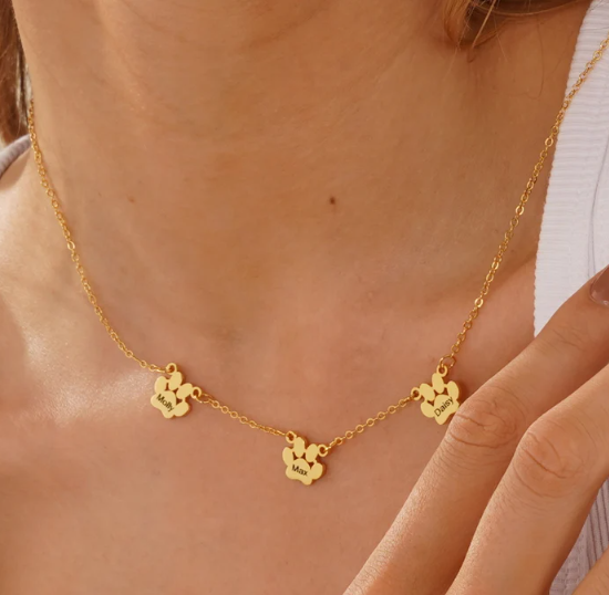 Custom Personality 316L Stainless Steel Pet Print Name Personalized Tiny Paw Animal Minimalist Pet Necklace Non Fading Jewelry