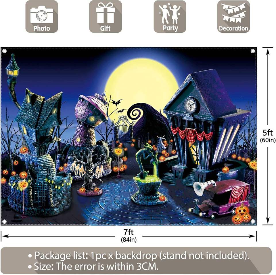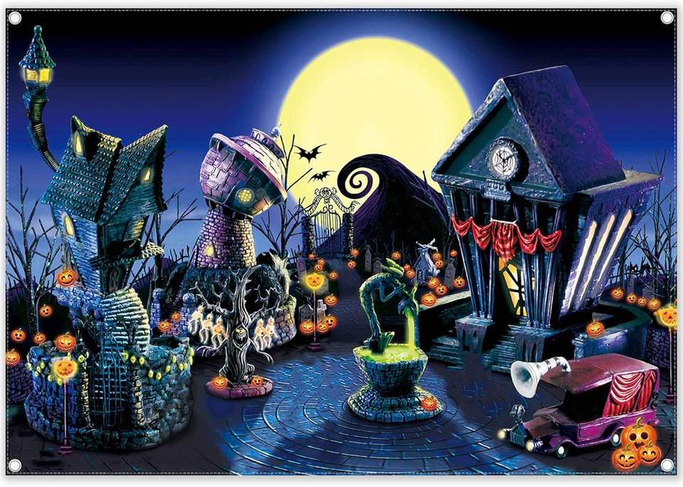 Personalizzato Incubo Personalizzato a Tema Festa di Zucca Luna Città Sfondo Tessuto per Halloween Bambino Doccia Feste di Natale