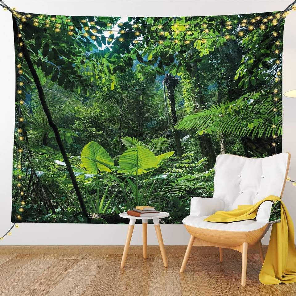 Tappezzeria Personalizzata Intrecciata e Stampata con Motivi Vegetali, Formato King Size, Giungla Verde, Natura Intatta, Preoccupazioni Ambientali, Flora e Fauna