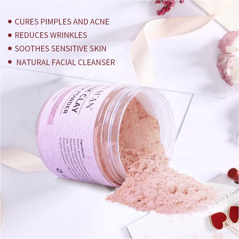 Custom Pink Bentonite Face Whitening Brightening Pores Purifying Exfoliating Kaolin Clay Mask Powder