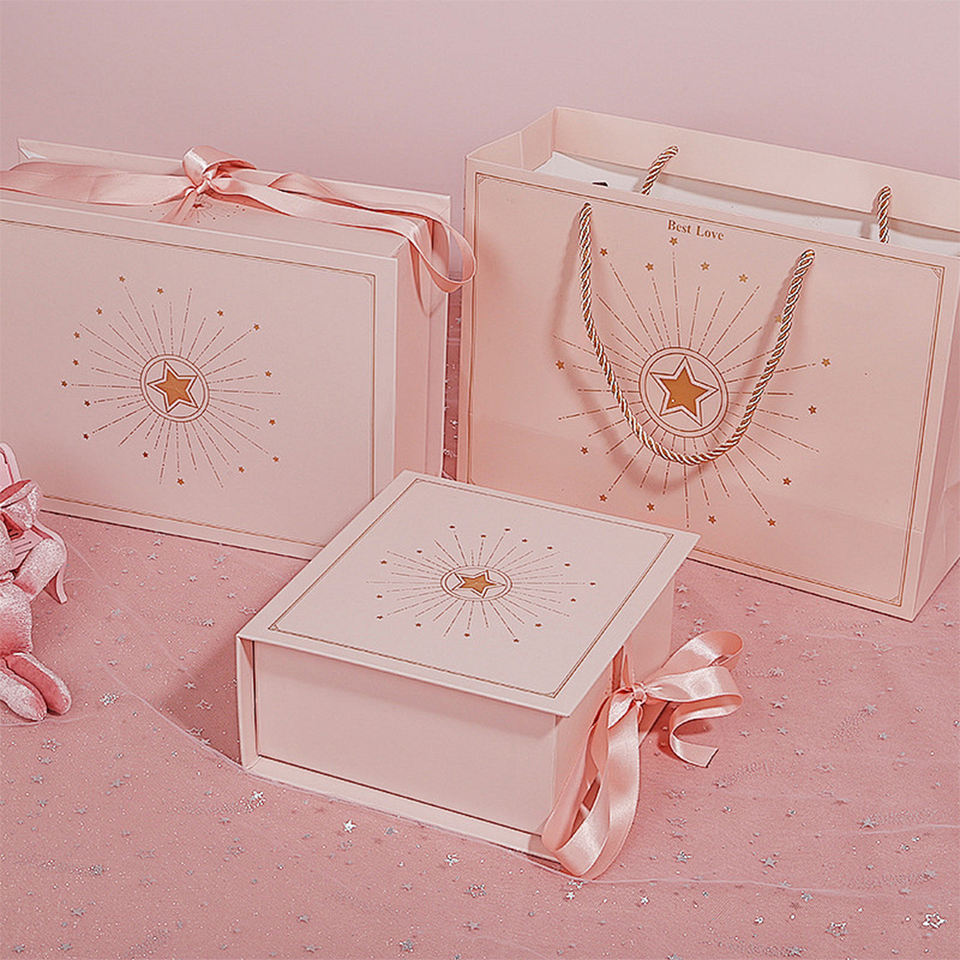 Contenitore regalo personalizzato rosa elegante confezione regalo magnetico con nastro regalo sacchetto regalo per san valentino