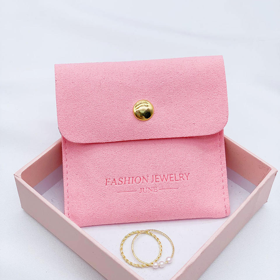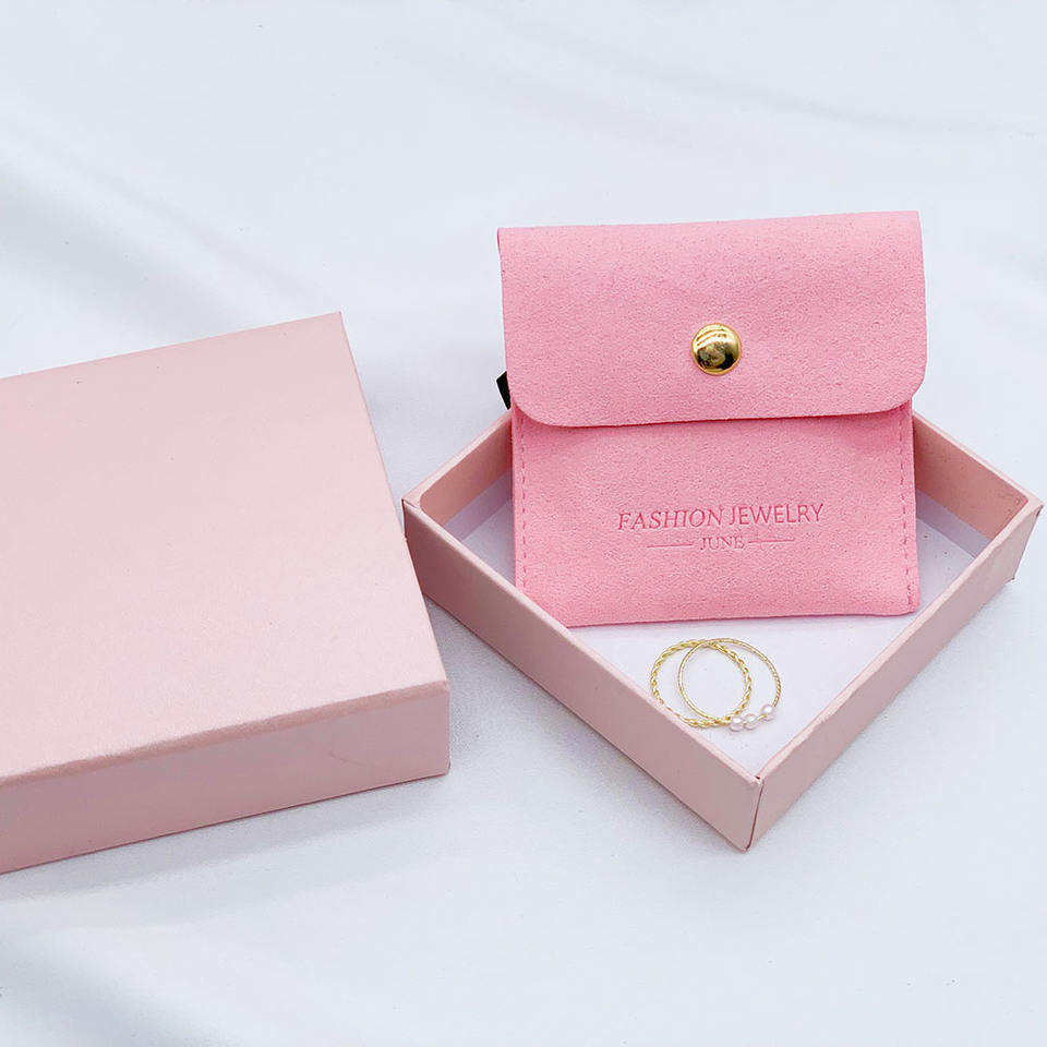 Set Personalizzato con Scatola e Pochette Portagioielli in Pelle Scamosciata Rosa, Sacchetto Portagioielli con Porta Orecchini, Busta Portagioielli con Bottone
