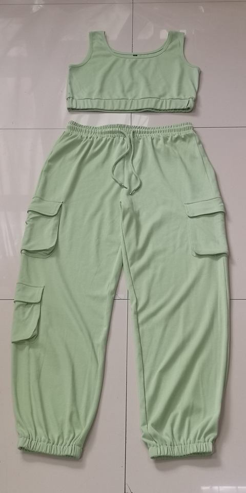 Completo Sportivo Personalizzato a Due Pezzi con Top Corto e Pantaloni Jogger con Tasche per Donna
