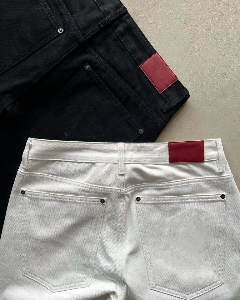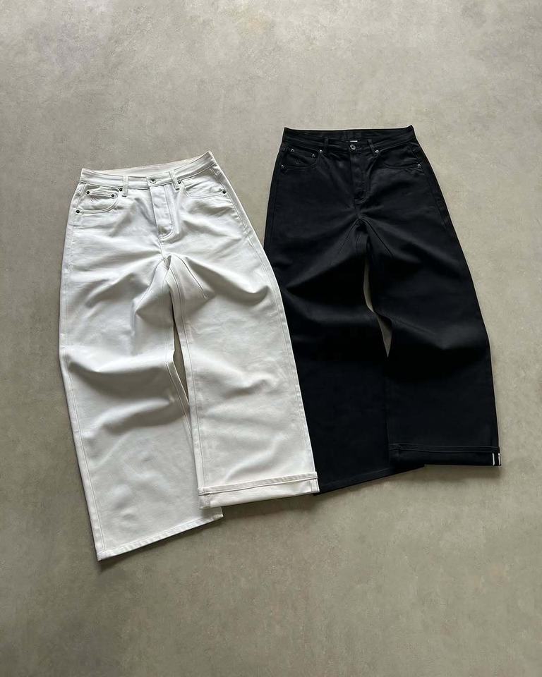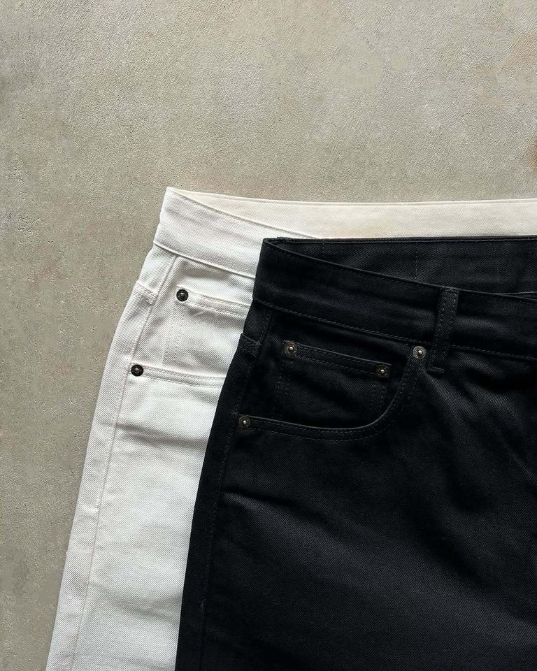 Custom Plain Raw Selvage Denim Jeans Baggy Fit Vintage Heavyweight Straight Leg Black White Japanese Cotton Denim Pants for Men