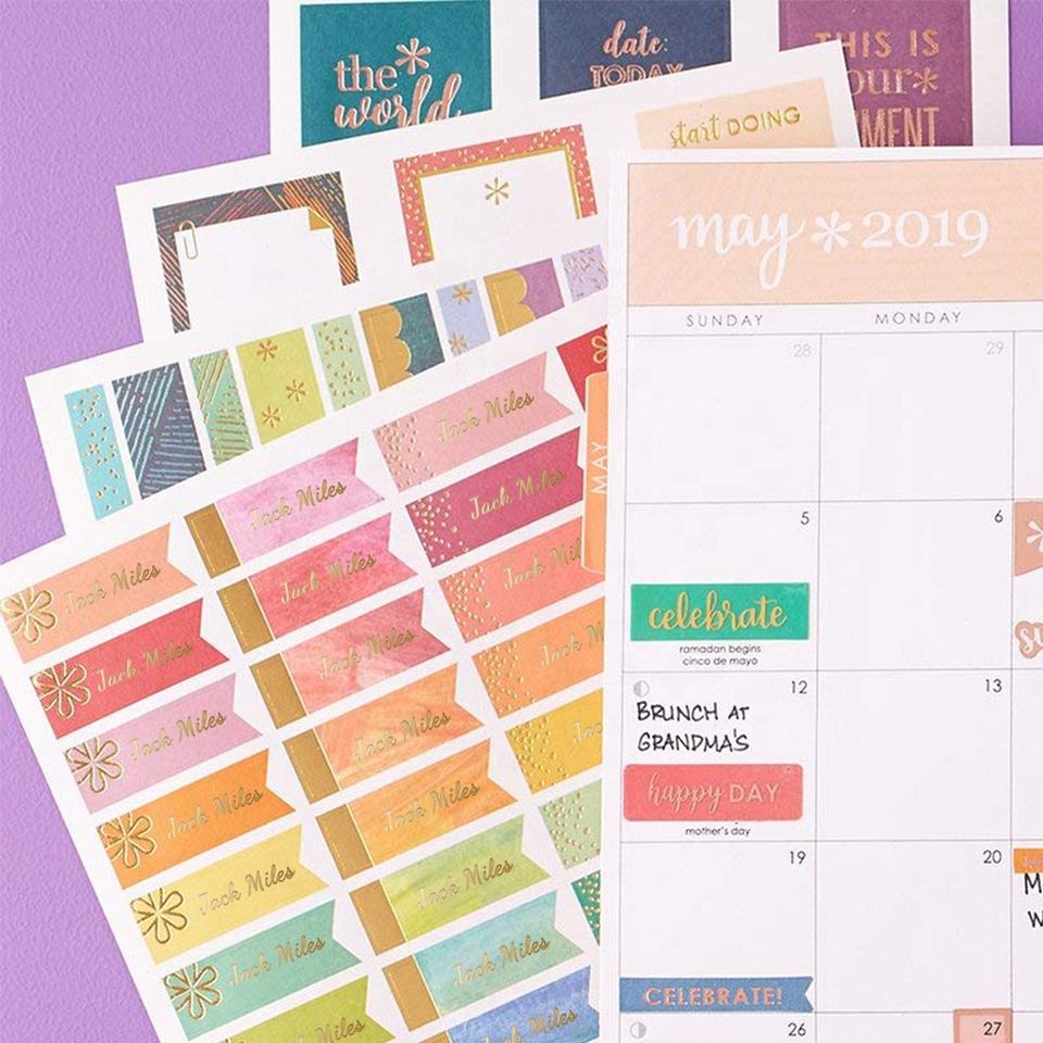 Fogli di Adesivi Decorativi Personalizzati per Planner e Diari, Adesivi con Lamina Dorata e Taglio Kiss-Cut