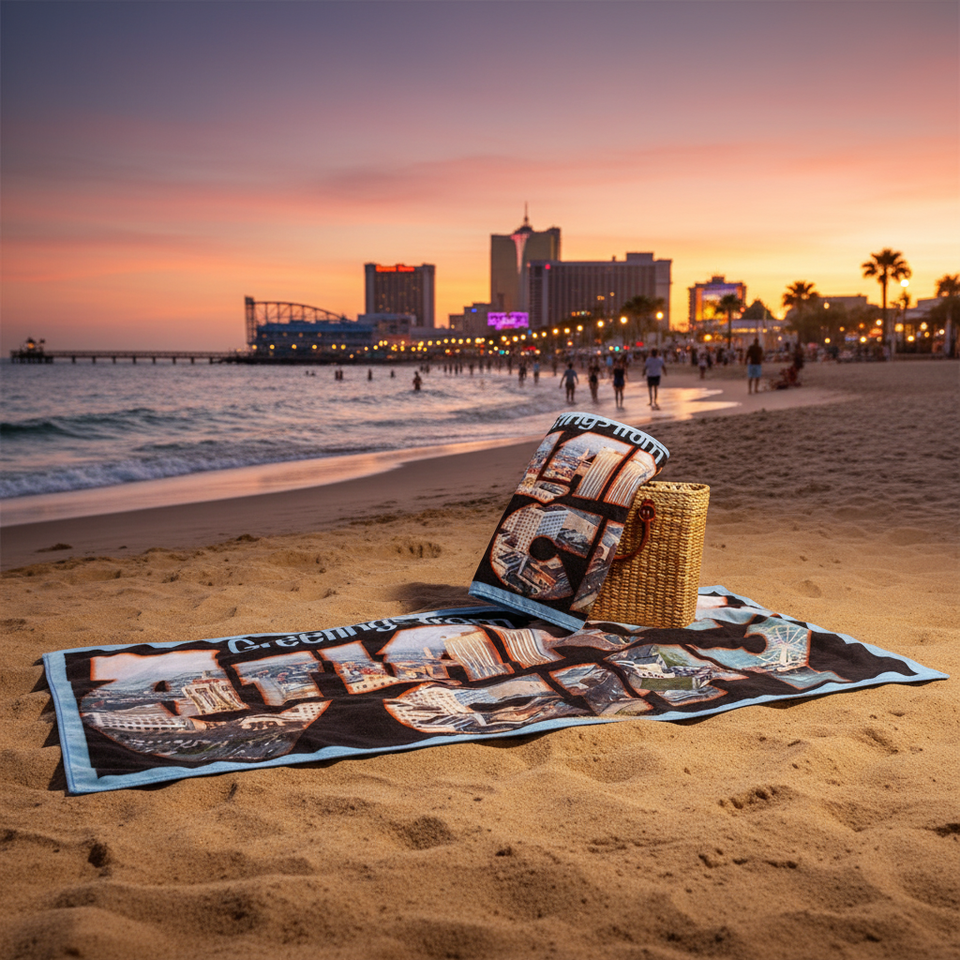 Asciugamano da Spiaggia in Peluche Personalizzato 30x60" ad Asciugatura Rapida con Logo Atlantic City, 48 Pezzi/Cartonetto, Stampa Sublimatica di Lusso Modello 79269