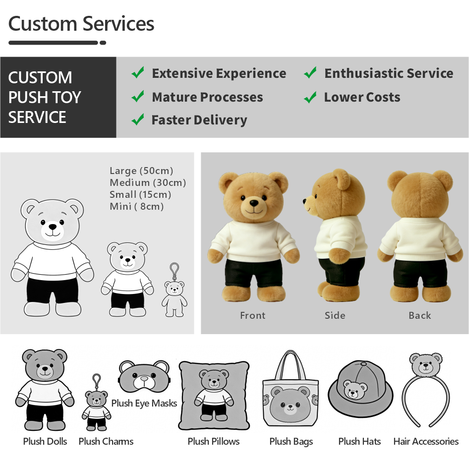 Bambole e Animali di Peluche Personalizzati con Imbottitura in Cotone PP, Misure Personalizzabili (11-30cm), Materiale Morbido, Scelta Libera di Lavorazione Artigianale