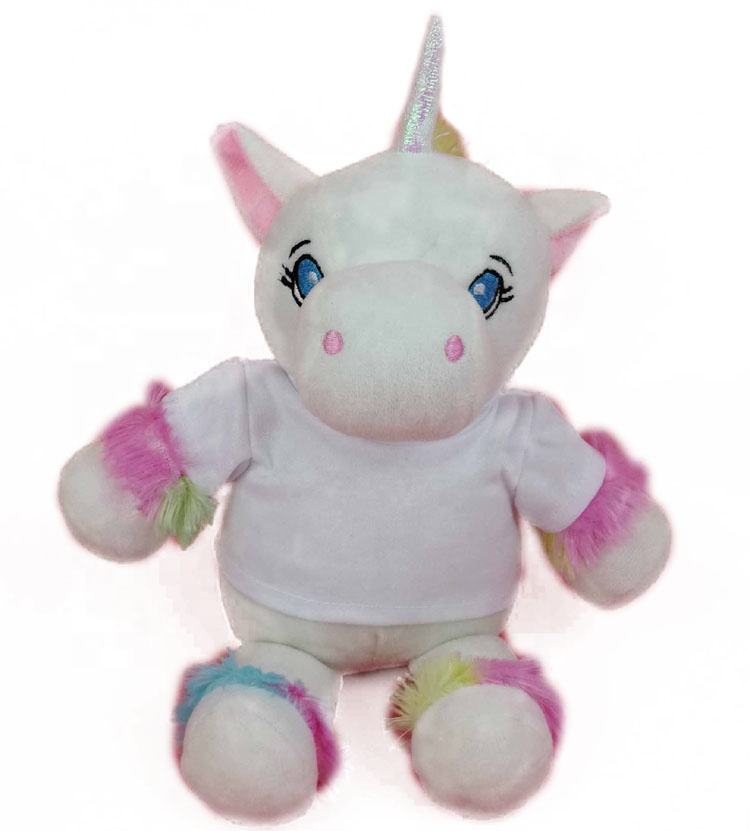 Custom Plush unicorn Toy Stuffed Toy unicorn Soft Toy with Shirt for Sublimation Printing