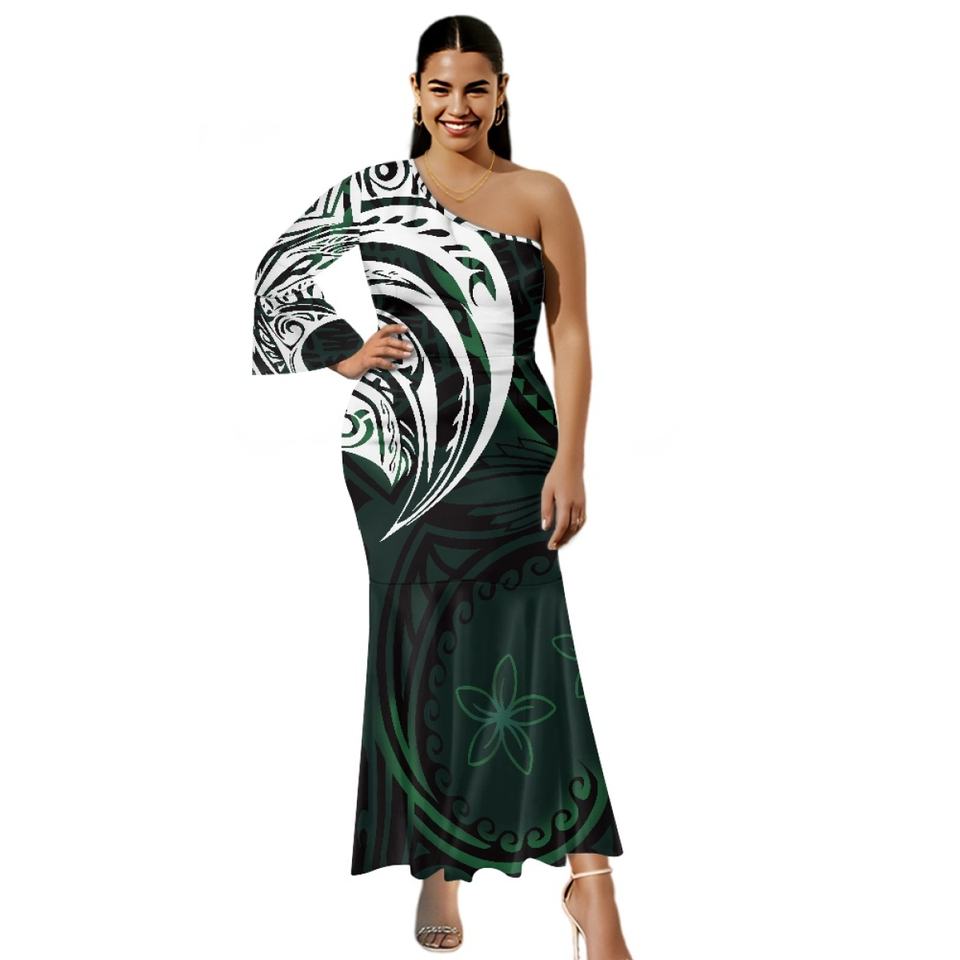 Disegno del tatuaggio tribale polinesiano personalizzato Sexy monospalla taglie forti vestito da ballo per 2025