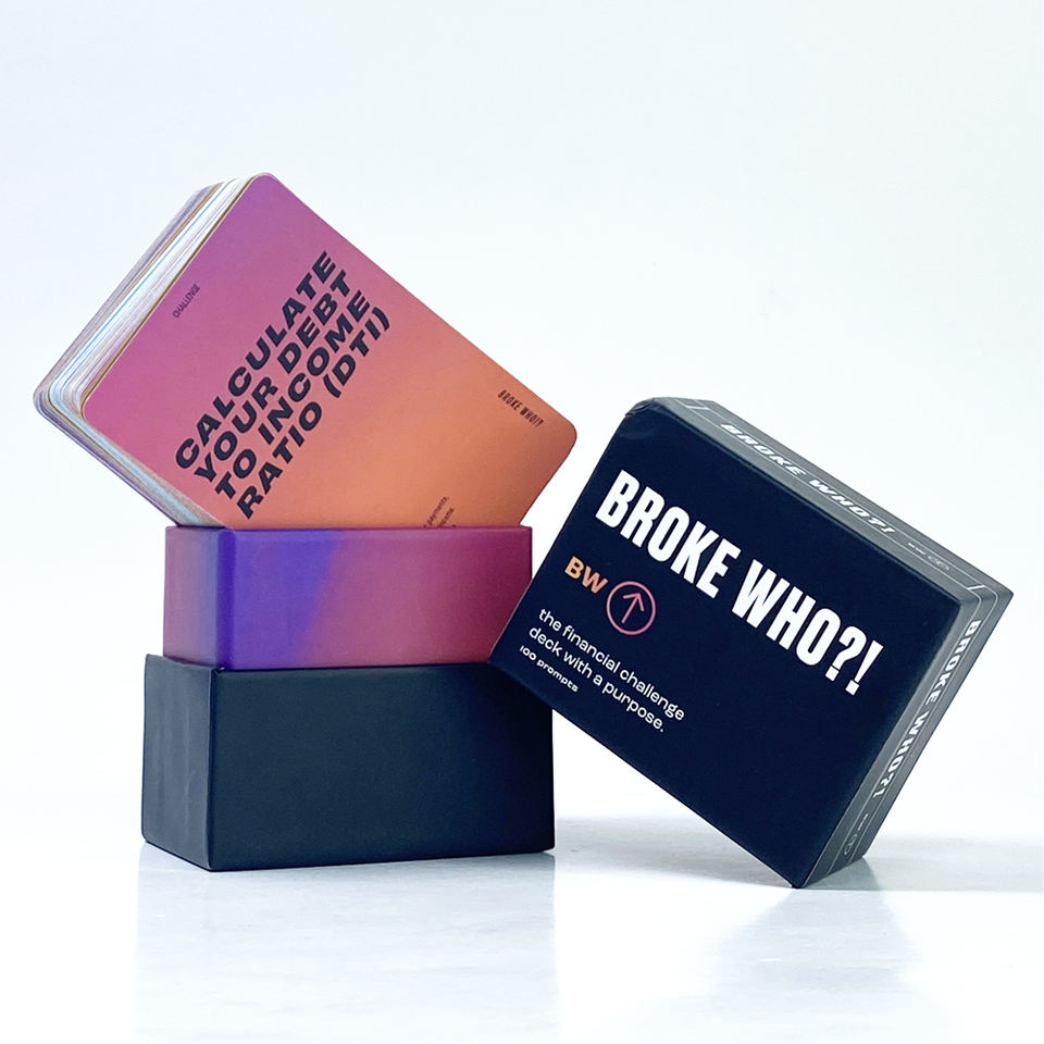 Carte da Gioco Finanziario Personalizzate con Domande Positive, Stampate in Fabbrica, per Adulti, Gioco di Gestione del Debito con Scatola con Coperchio e Base