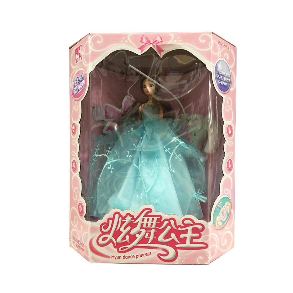 Scatola Espositiva in PVC Personalizzata a Tema Principessa, Imballaggio in Cartone Stampato con Inserto in Blister per Bambola Danzante Interattiva