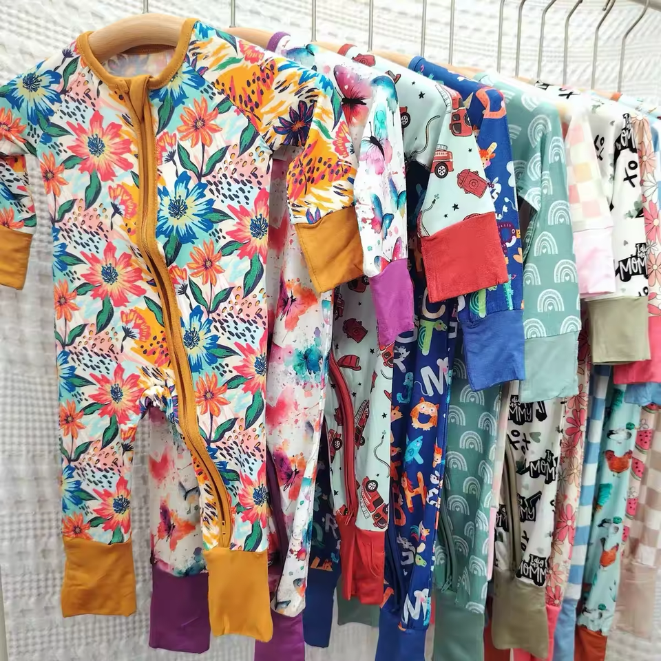 Stampa personalizzata in fibra di bambù pagliaccetto con cerniera per bambini vestiti pigiama per bambini pigiama pigiama da bambina 12-18 mesi