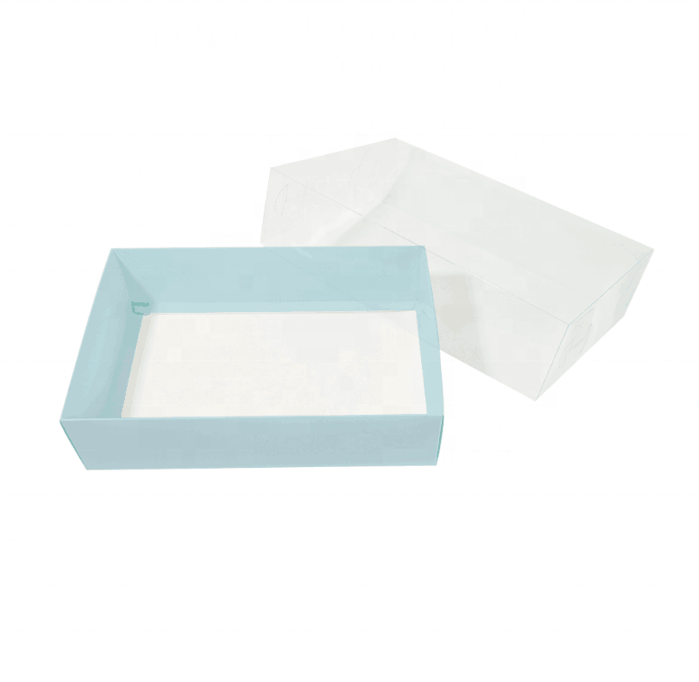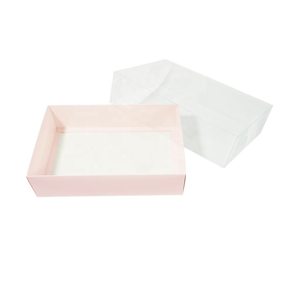 Scatola Regalo in Carta Ecologica Personalizzata con Logo per Bomboniere, Caramelle, Cioccolato, Torta alla Fragola con Coperchio Trasparente in PVC PET