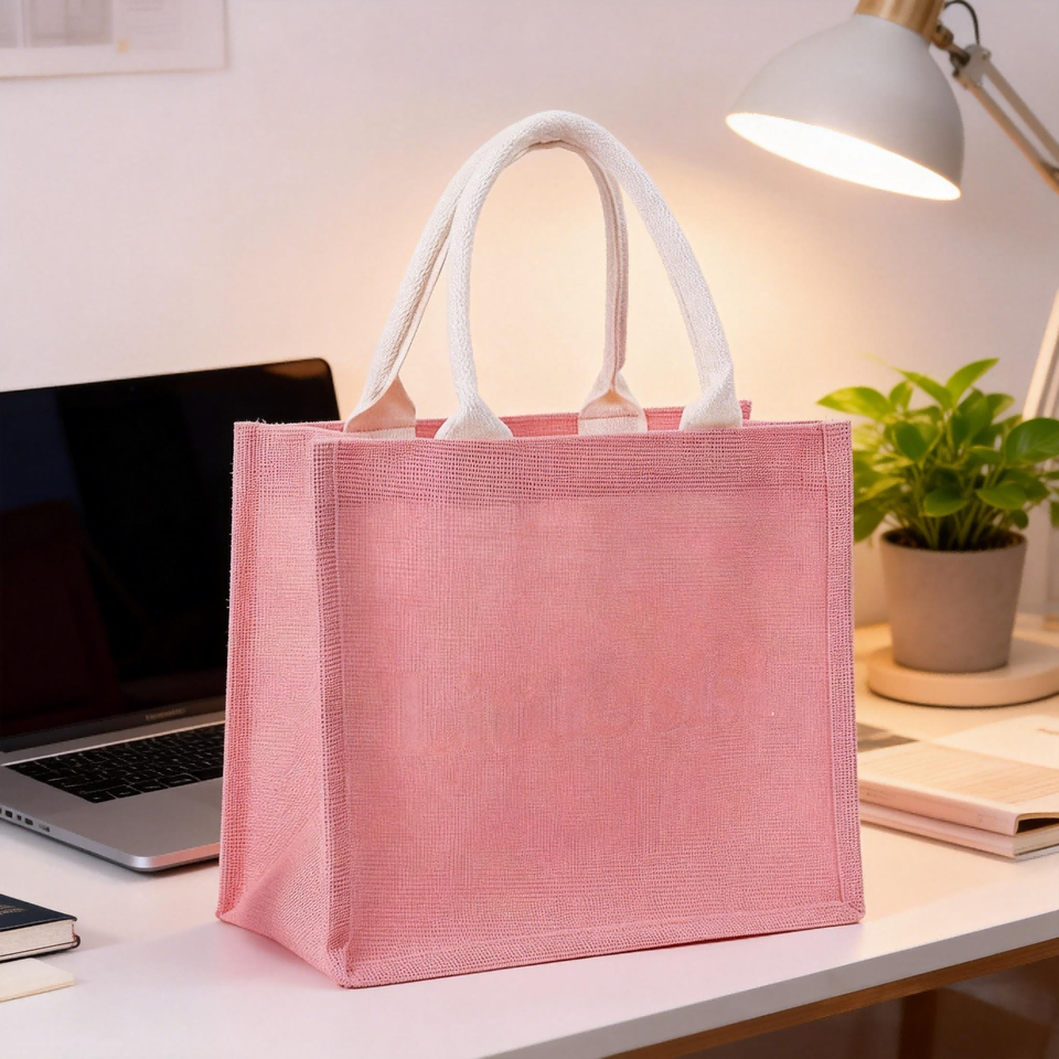 Borsa Tote in Iuta Rosa con Logo Personalizzato, Borsa per Shopping in Lino per Abbigliamento, Souvenir per Matrimoni e Regali