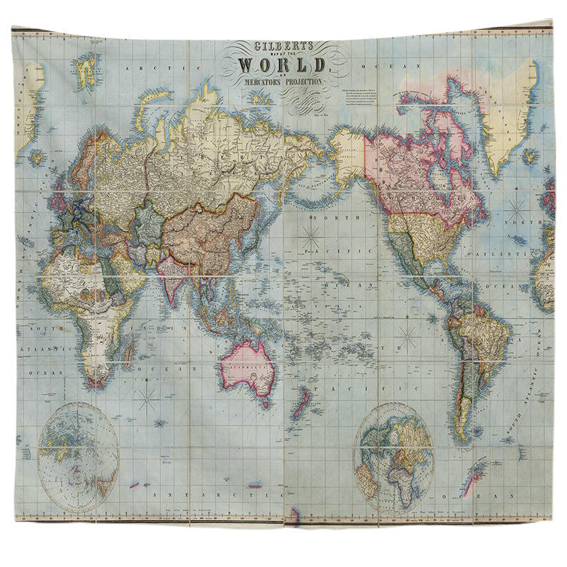 Stampa personalizzata Vintage mappa del mondo arazzo per pittura a muro decorazione per interni