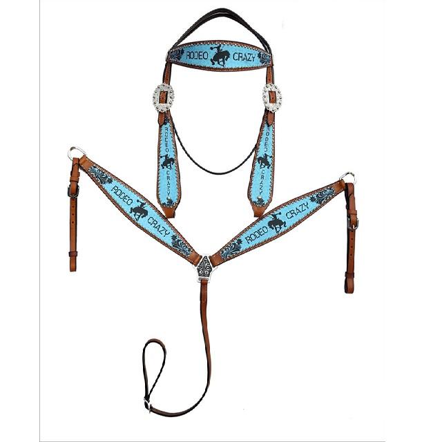 Set di 100% in pelle di alta qualità con stampa personalizzata di Rodeo pazzo cavallo Set di attrezzi da equitazione comodo copricapo equestre