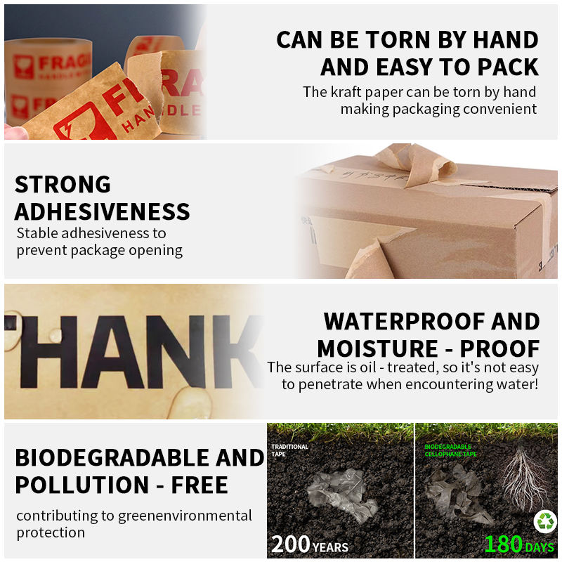 Nastro Adesivo in Carta Kraft Rinforzato con Fibra, Stampato su Misura, 3 Pollici X 375 Piedi, per Sigillatura Cartoni