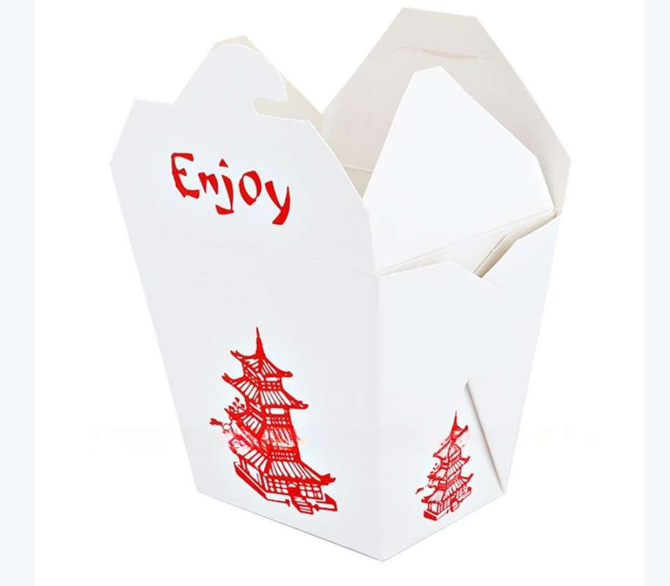 Custom stampato monouso cartone bianco imballaggio per cibo da asporto riso cinese Noodle scatola di carta da imballaggio con manico
