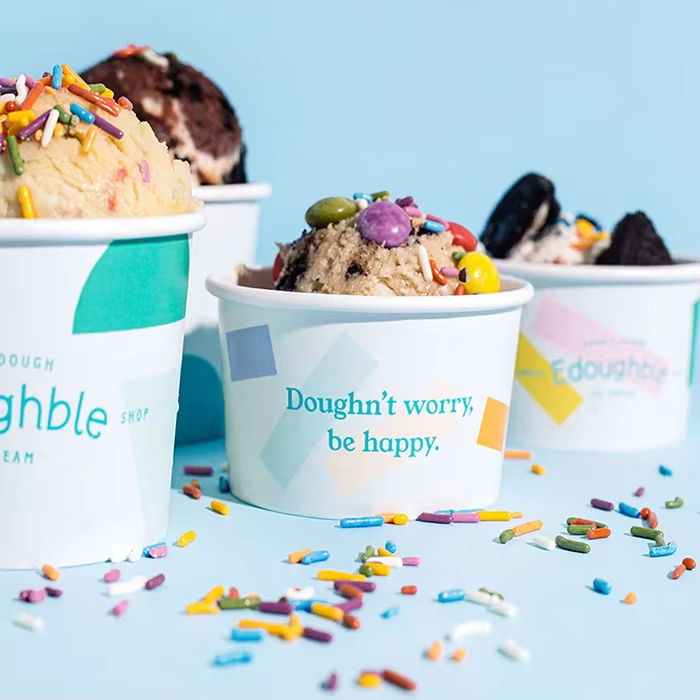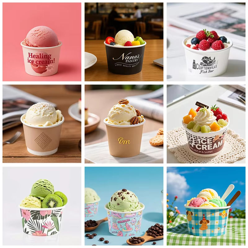 Bicchieri di Carta Biodegradabili per Gelato con Logo Personalizzato Stampato per Confezioni da Asporto di Dessert Congelati