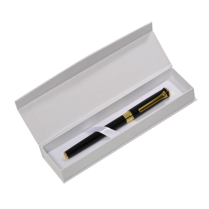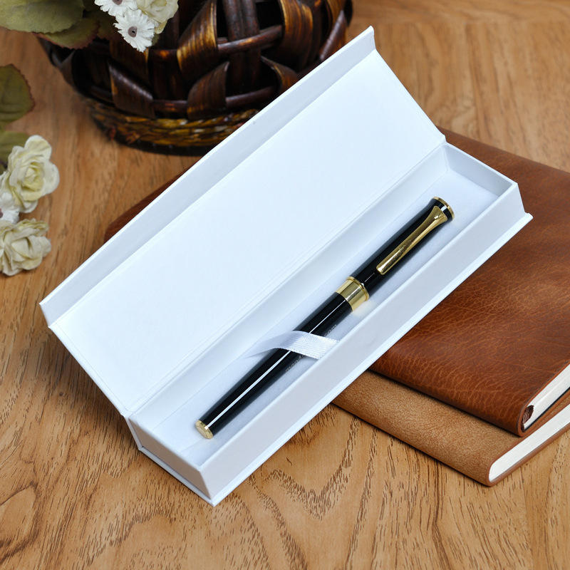 Logo stampato personalizzato chiusura magnetica in cartone rigido bianco Flip Pen penna a sfera firmatario confezione regalo per penna