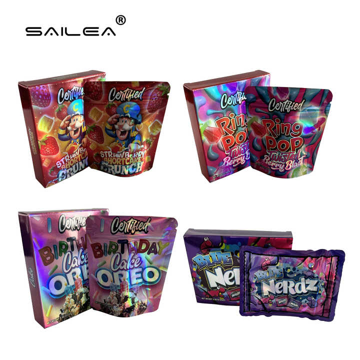 Custom Printed Mini Mylar Ziplock Boxes 1g 3.5g 7g 14g Stand up Pouches Smell Proof Packaging Printing Products