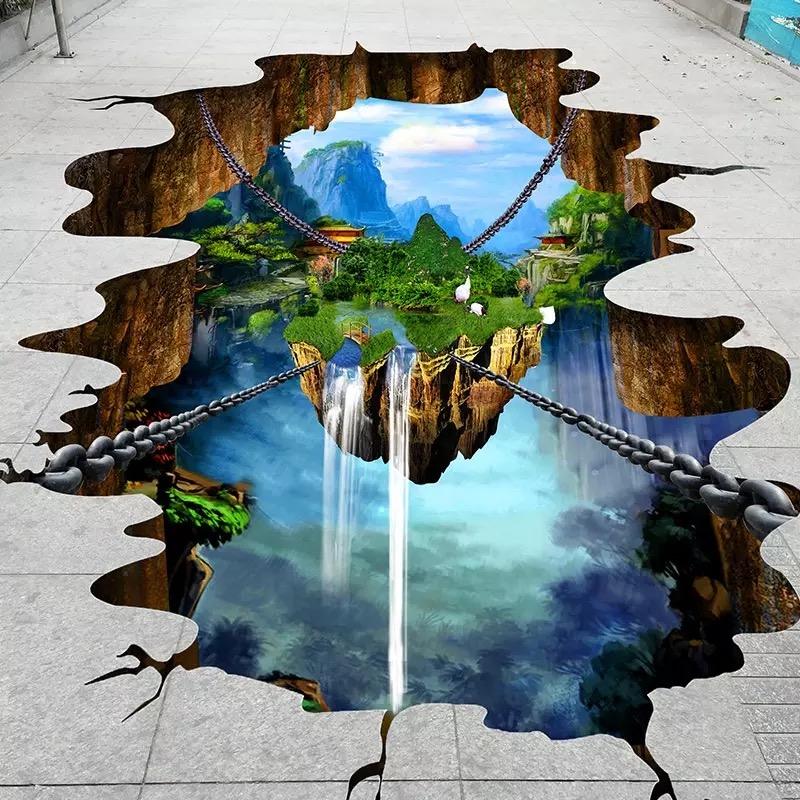 Adesivo per pavimenti in piastrelle impermeabili stampato su misura 3D pittura a terra adesivo paesaggio per la decorazione