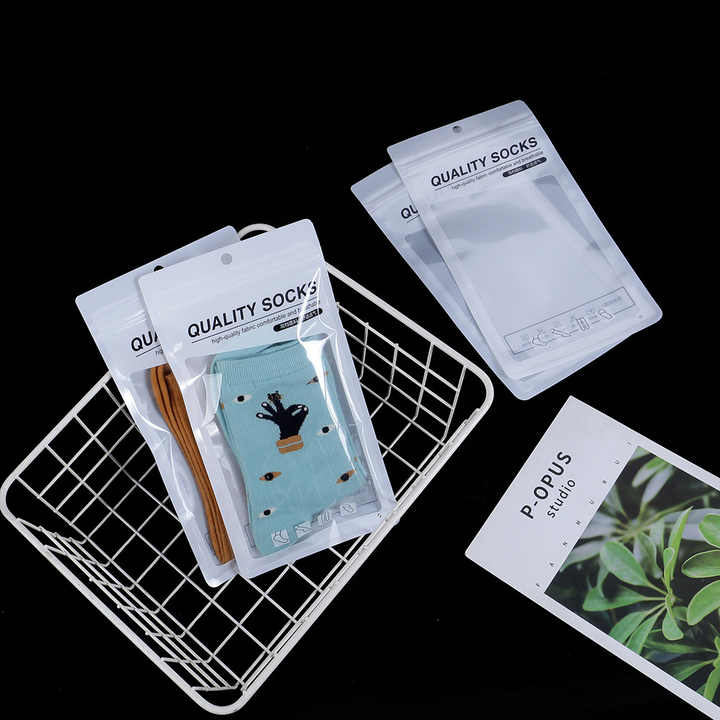 Sacchetti Bianchi Opachi Personalizzati con Stampa, Buste Piatte con Cerniera Trasparente su un Lato per Imballaggio di Calzini, Indumenti e Vestiti