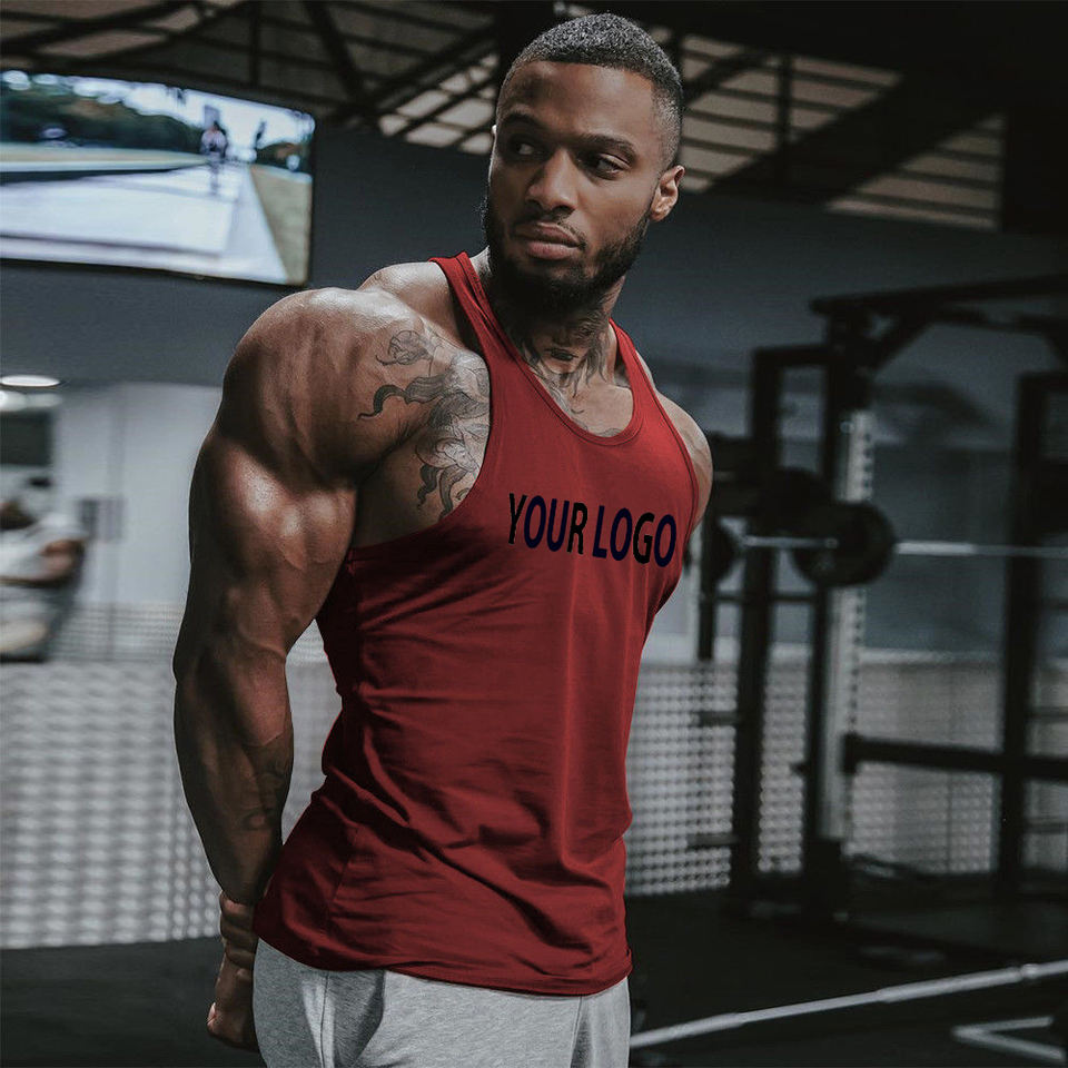 Custom Printing Fitness Sport Shirt Y BACK Racer Men Gym Singlet Stringer 100% Cotton Muscle Tank Tops