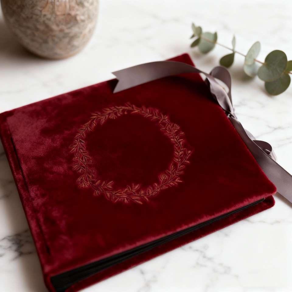 Custom Printing Luxury Album Elegant Velvet Photo Booth Guest Books Guestbook Sign Wedding Guest Book With Ribbon and Box