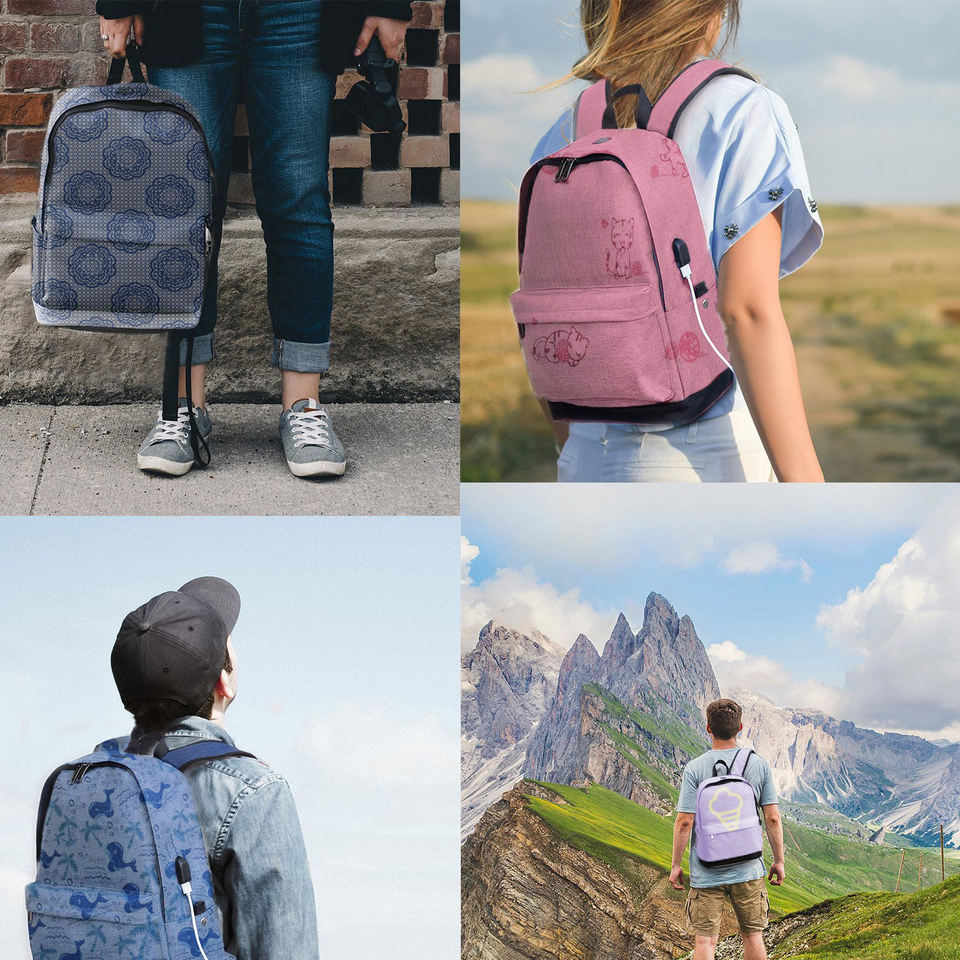 Stampa personalizzata popolare zaino di ricarica USB borse da scuola per adolescenti per studenti universitari