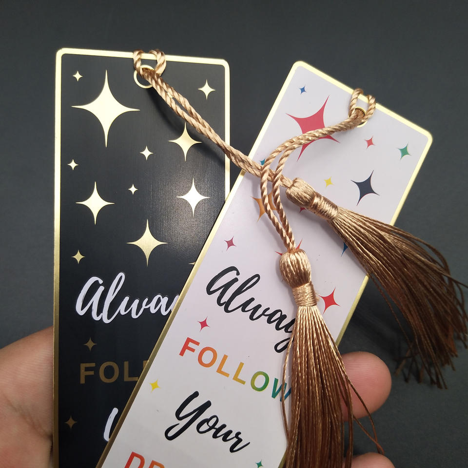 Stampa personalizzata logo in metallo segnalibro con nappe