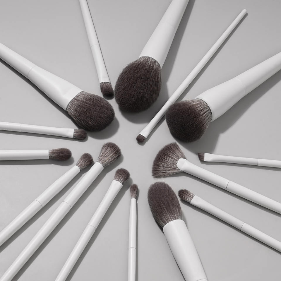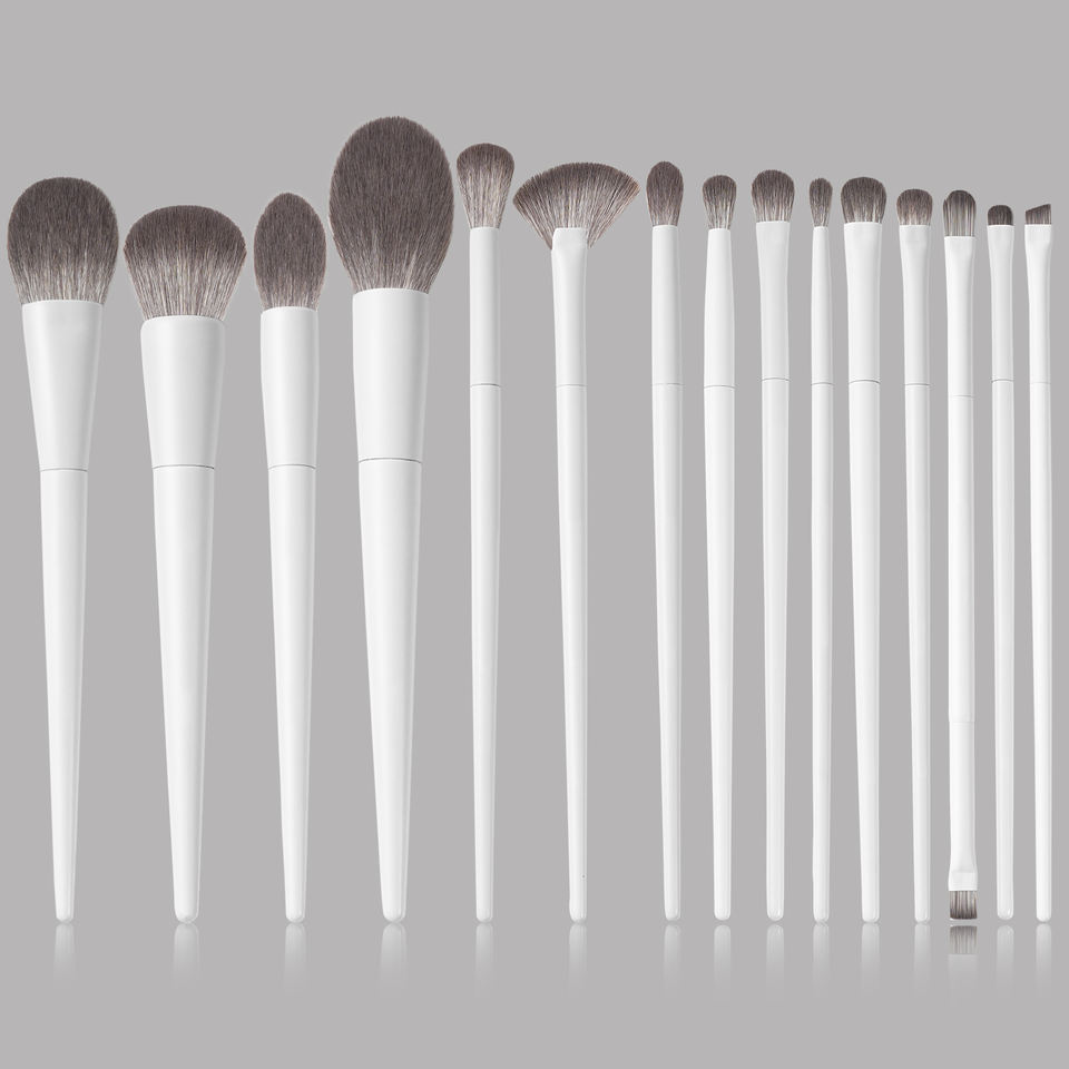 Set di 15 Pennelli Vegani di Lusso con Etichetta Privata Personalizzata, Manico in Legno per Viso, Ombretto, Contorno, Blush, Pennelli Professionali per Trucco