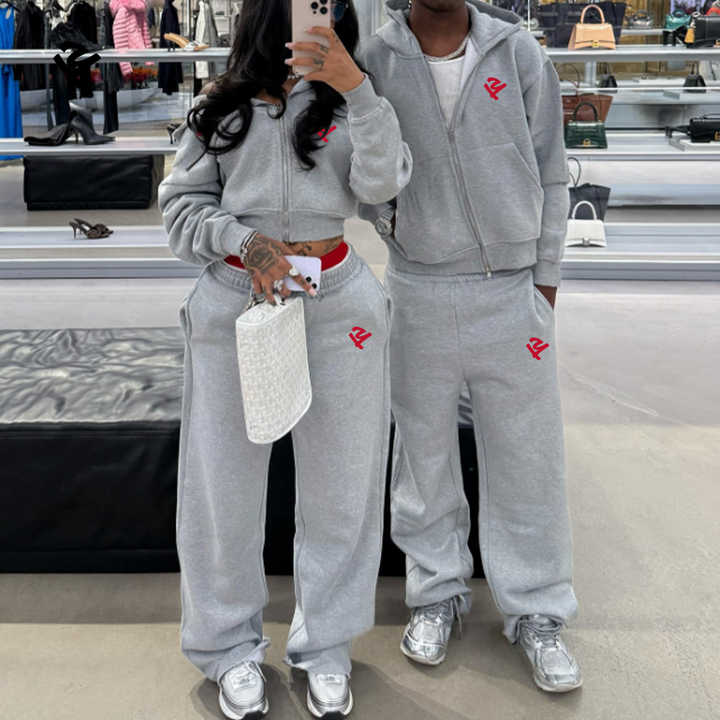 Tuta Sportiva Personalizzata con Stampa a Rilievo per Donna, Felpa con Zip e Pantaloni Larghi, Set Oversize in Pile per Jogging