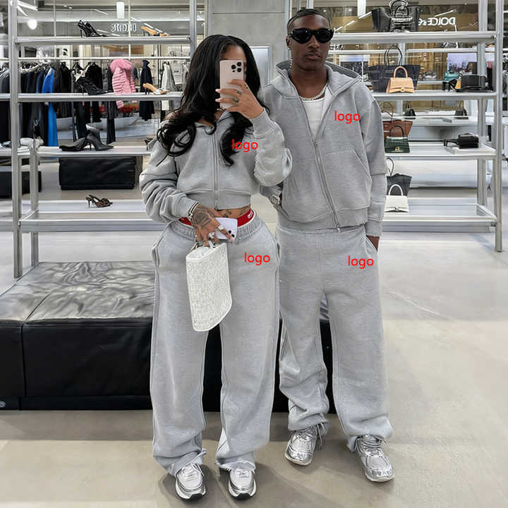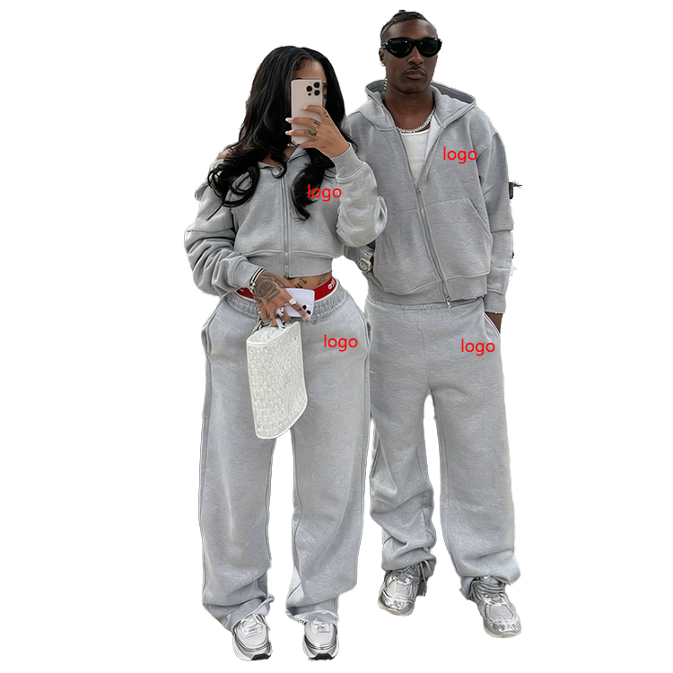 Tuta Sportiva Personalizzata con Stampa Puff per Donna, Set con Felpa con Zip e Pantaloni Larghi, Completo Oversize in Pile per Jogging