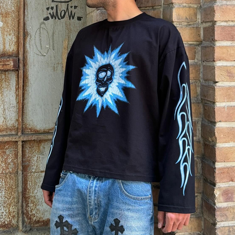 T-Shirt a Maniche Lunghe Stile Punk Personalizzata, Felpa di Alta Qualità in Cotone Stampato, Produttore di Abbigliamento Personalizzato OEM