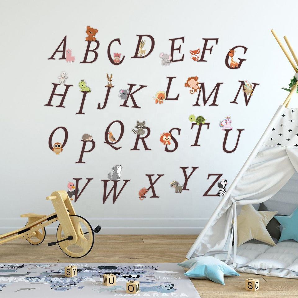Adesivi Murali Personalizzati Rimovibili Trasparenti con Lettere dell'Alfabeto e Animali in Vinile Autoadesivo