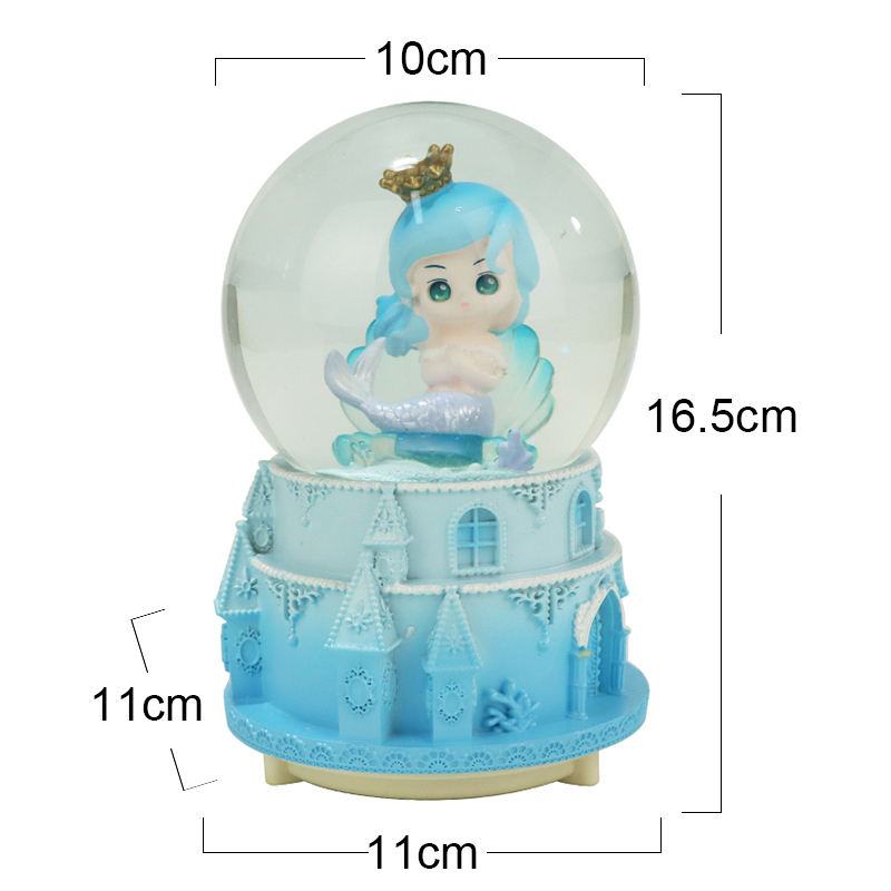 Resina personalizzata realizzata In kawaii carina sirena di mare In cristallo di carillon a palla di neve