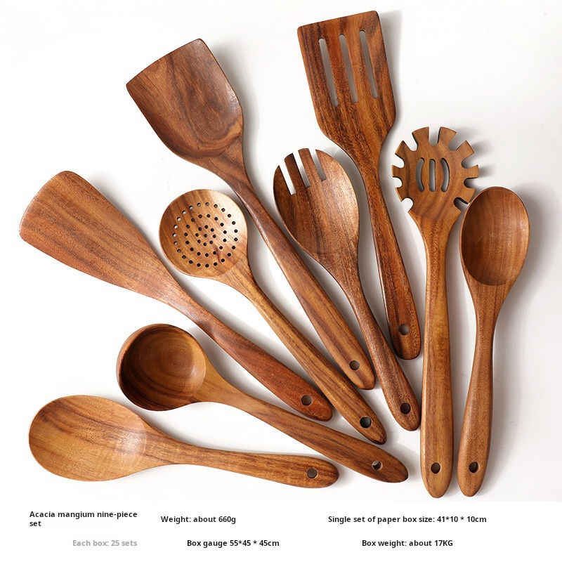 Set di Utensili da Cucina per Ristorante Personalizzati in Legno Eco-Friendly con Spatola e Mestolo per Cucinare
