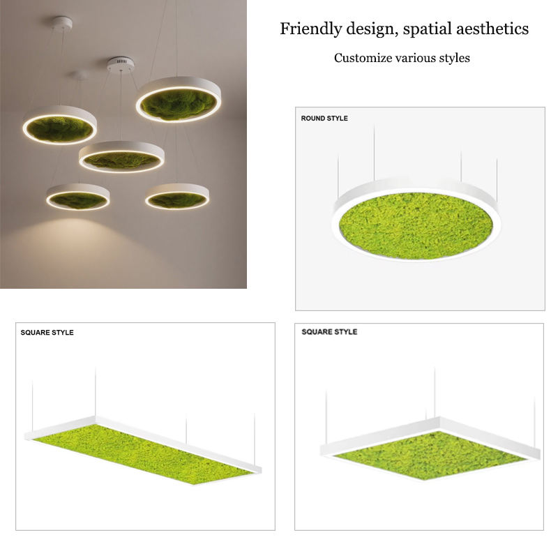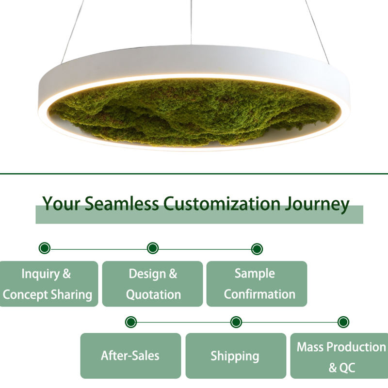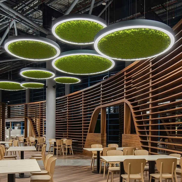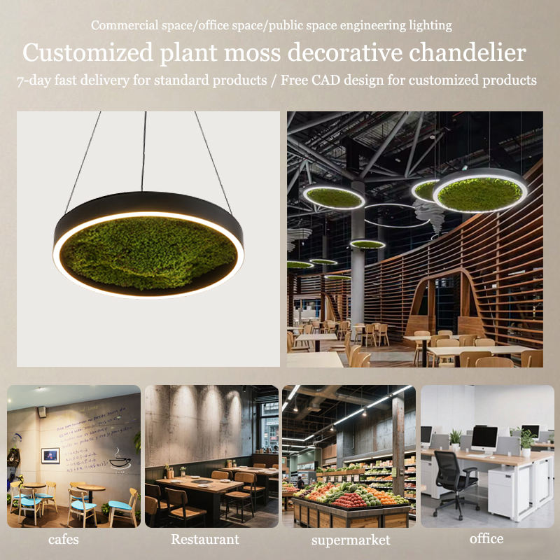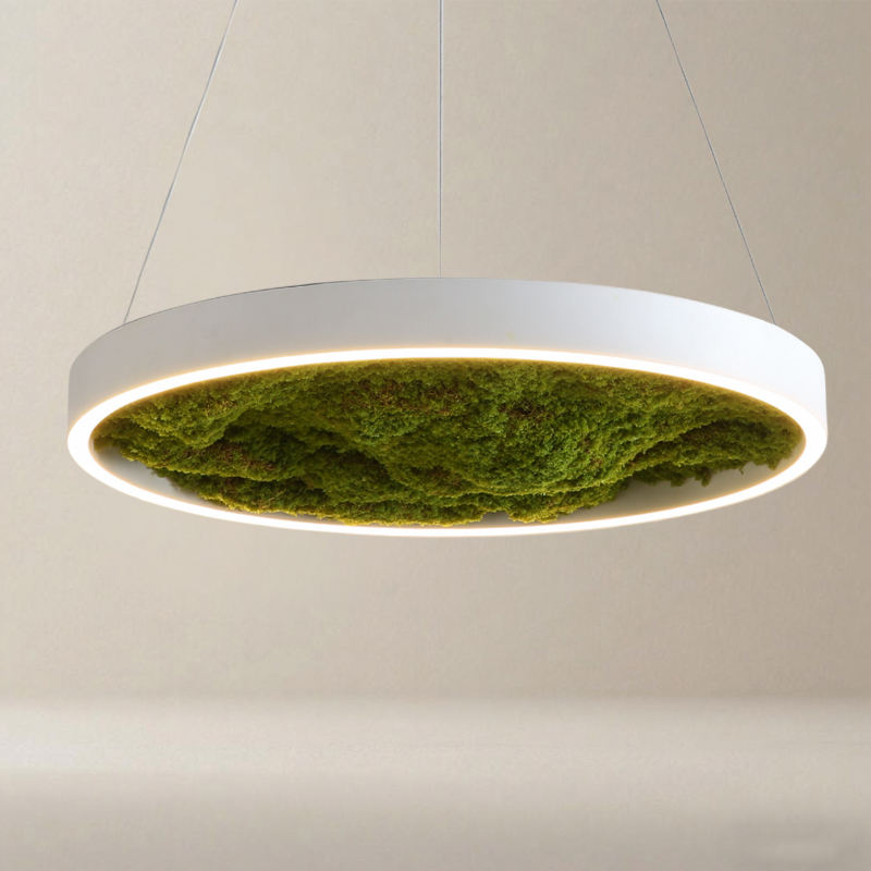 Lampadario Decorativo Rotondo con Muschio e Piante Artificiali, Plafoniera Unica e Moderna su Misura per Ristoranti e Supermercati