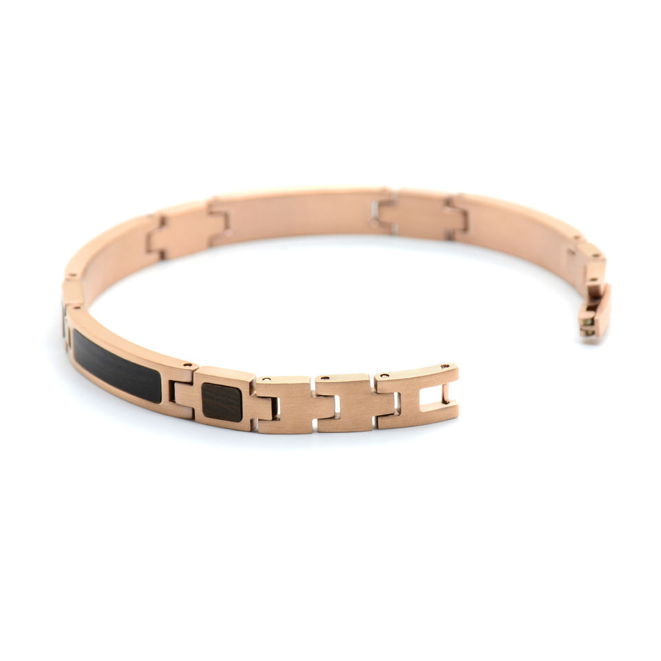 Braccialetto personalizzato in acciaio e legno placcato oro rosa in acciaio e legno di lusso per ragazze di moda set regalo di nozze per le donne
