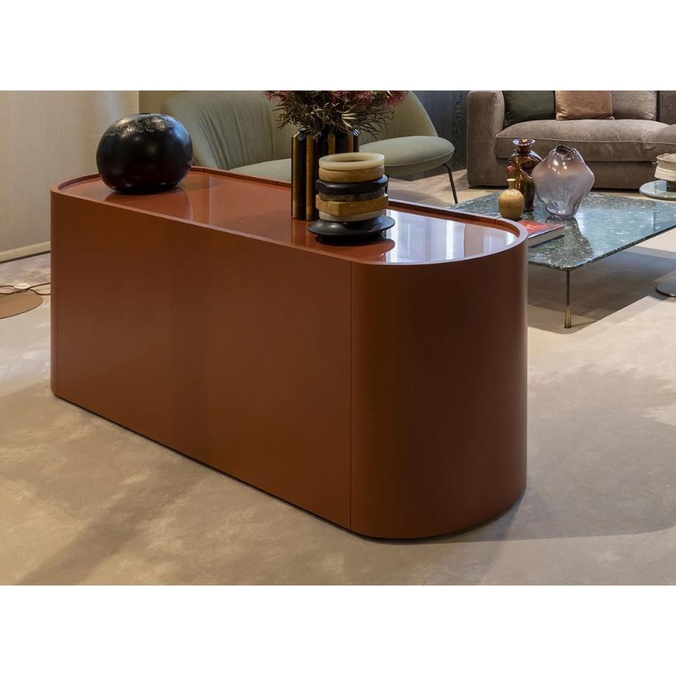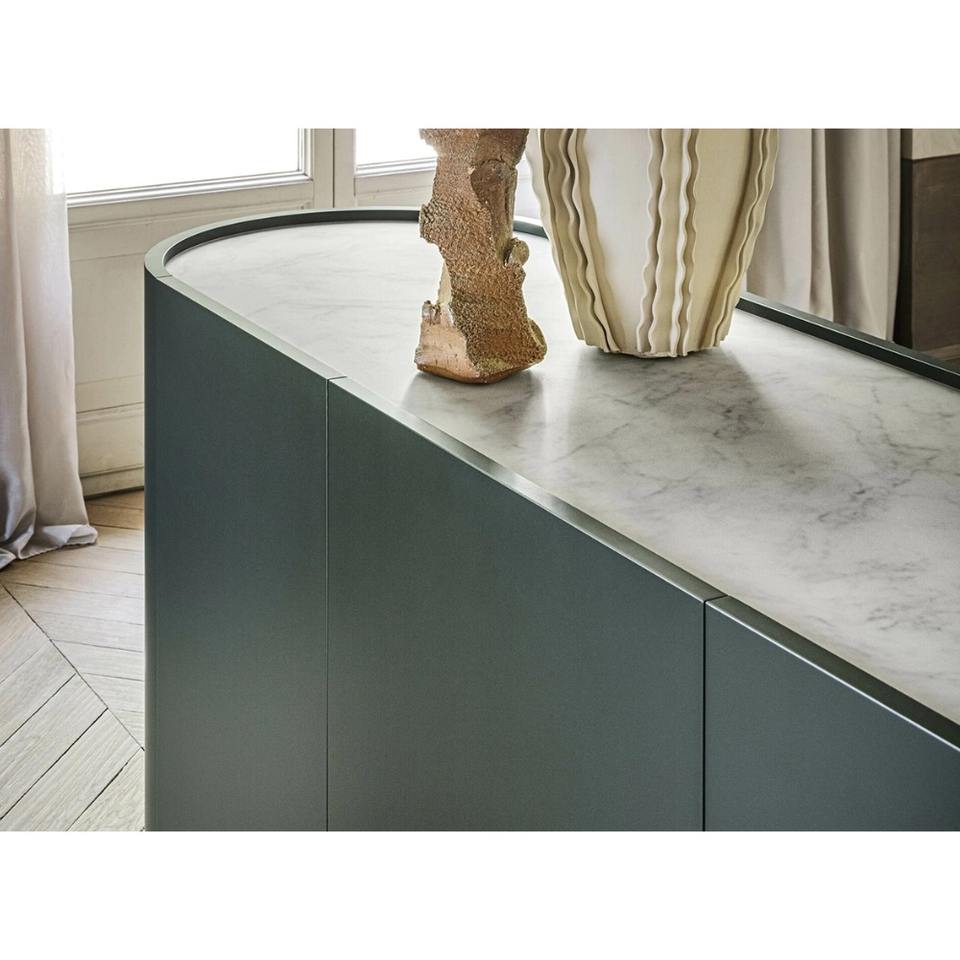 Cassettiera Arrotondata Personalizzata in Laccato Opaco, Laccato Lucido o Legno, Credenza Indipendente con Base in Metallo e Piano in Quarzo