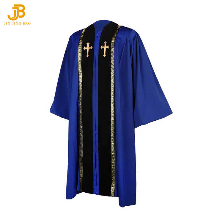 Custom Royal Blue Wesley Clergy Robes With Embroidery Cross Velvet Panel Church Uniform for Priest