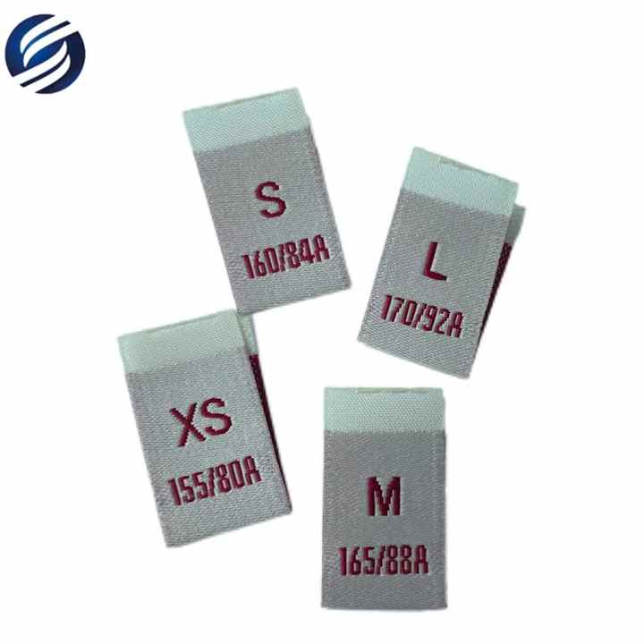 Custom S M L XL numero centro piega tessuto tessuto collo lettera taglia etichette per abbigliamento