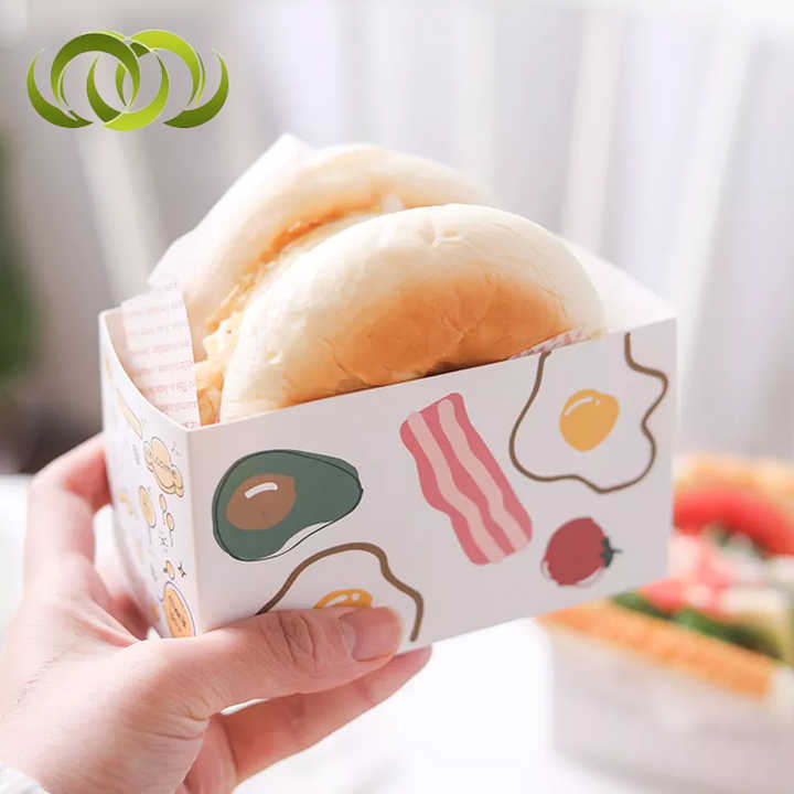 Custom Sandwich Hamburger Rectangle Square Bakery Boxes Bread Pastry Packaging Disposable Baked Food Box