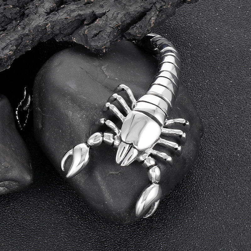 Bracciale Scorpione Personalizzato Nero e Oro in Acciaio Inossidabile da Uomo, Gioiello Animale Audace con Ciondolo Scorpione Audace, Vendita all'Ingrosso
