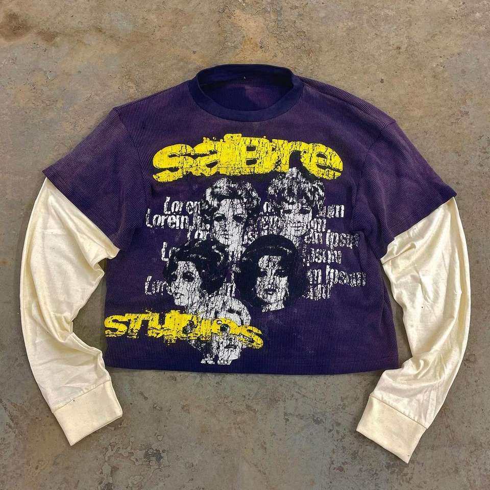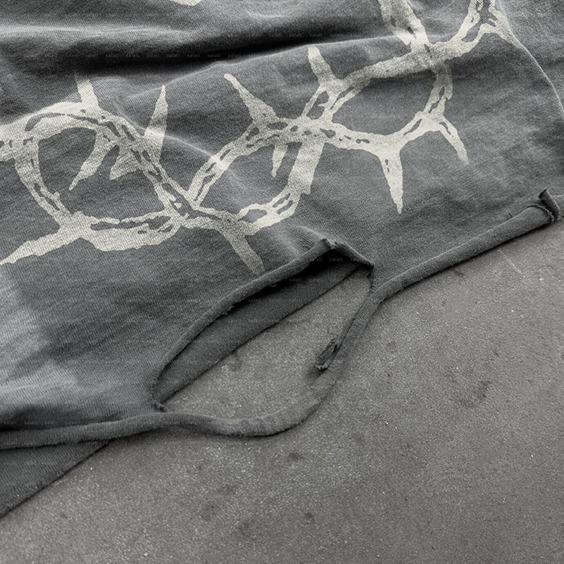 Custom Screen Print T-Shirt Cotton Ripped Distressed Stone Vintage Acid Wash Double Layer Long Sleeveless T Shirt for Men